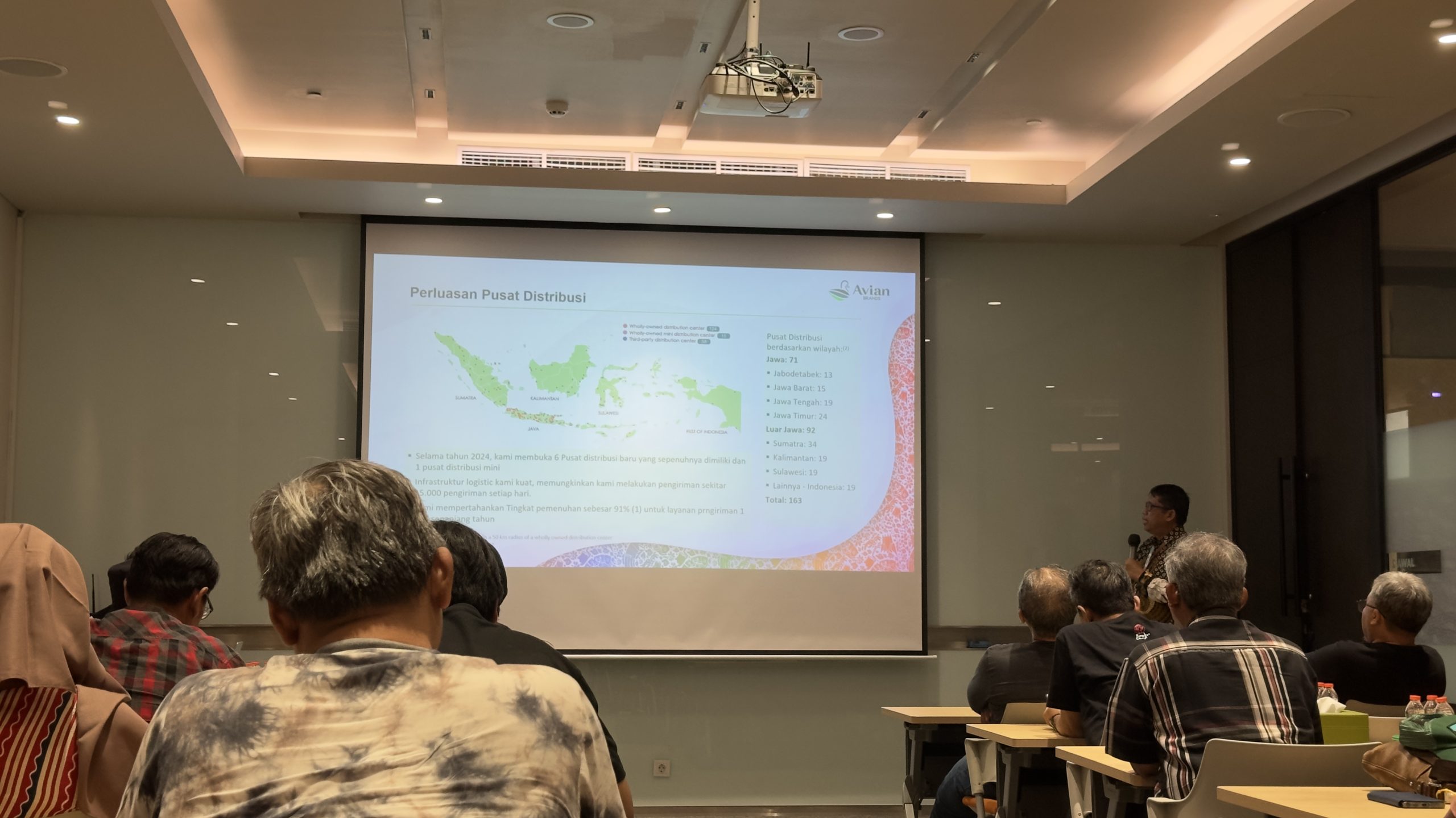 Siang harinya, rombongan bergerak menuju Pabrik Cat Avian. Agenda dimulai dengan paparan dari tim Avian mengenai sejarah berdiri, perkembangan usaha, inovasi produk, keberlanjutan, serta peran cat dalam mendukung arsitektur modern. Setelah itu, peserta makan siang bersama kemudian  diajak mengikuti pabrik tour, menyusuri lini produksi, museum cat, dan laboratorium penelitian Avian. Kegiatan ini memberi wawasan baru mengenai pentingnya industri pendukung arsitektur.